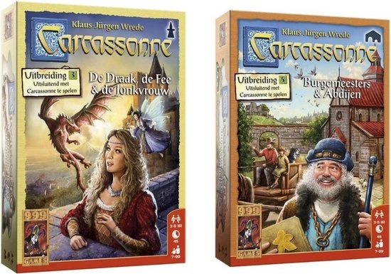 De omgeving van Carcassonne wordt geteisterd door een rondzwervende draak. Dappere helden proberen hun horigen tegen het reusachtige monster te beschermen, maar zonder hulp van de fee staan ze volkomen machteloos. In de stad flirt de jonkvrouw met afgeleide ridders, terwijl boeren via magische poorten aan de aandacht van de draak trachten te ontsnappen. Carcassonne wordt met de uitbreiding De Draak, de Fee en de Jonkvrouw pas echt een sprookje!Hoe combineer ik de verschillende Carcassonne-producten?