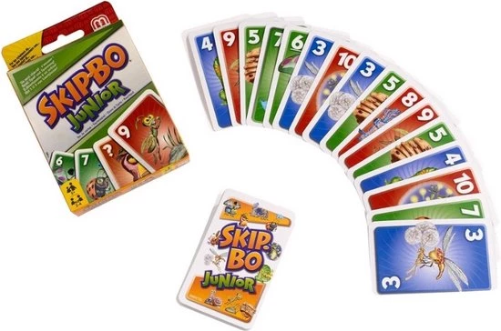 Het geliefde spel Skip-Bo Junior is speciaal voor de junioren. Skip-Bo Junior is een eenvoudig te leren, snel kaartspeel voor groot en klein. De kaarten moeten in de juiste volgorde weggelegd worden. Wie als eerste al zijn kaarten weg heeft gespeeld heeft gewonnen. De Junior versie heeft leuke afbeeldingen van dieren.