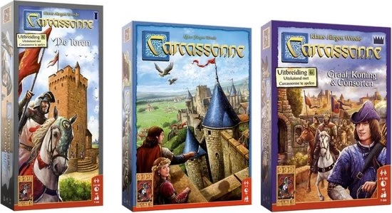 Nieuwe versie van de uitbreiding op het populaire legspel Carcassonne Bouw gezamenlijk aan torens om meeples van andere spelers gevangen te nemen. Als 2 partijen een meeple van elkaar hebben opgesloten, wisselen ze deze weer uit. Meeples zijn te beschermen door een toren in bezit te nemen. In combinatie met het basisspel is deze uitbreiding met ten hoogste 5 spelers te spelen, maar met Kathedralen & Herbergen kan er nog een speler meedoen. Carcassonne: De Toren is de ideale uitbreiding voor spelers die het een genot vinden om hun tegenstanders goed dwars te zitten.Hoe combineer ik de verschillende Carcassonne-producten?