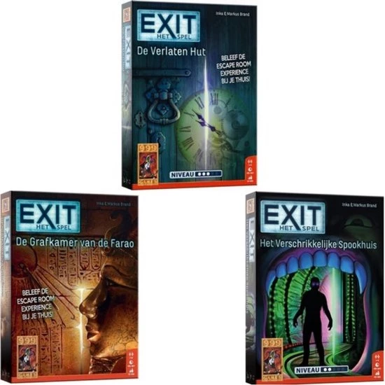 Het uitdagende coöperatieve escape room-spel! Duistere gangen, onheilspellend gehuil, griezelige gedaanten, dat klinkt ontzettend leuk! Maar dat dachten jullie totdat jullie in het karretje zijn gaan zitten… Plotseling zitten jullie op deze angstaanjagende locatie vast, de deuren voor en achter jullie zijn op slot en jullie stuiten op vreemde raadsels… EXIT: Het Verschrikkelijke spookhuis is maar één keer speelbaar omdat het speelmateriaal moet worden beschreven, gevouwen of afgescheurd. Maar net als in een “echte” escape room garanderen we een zeer intense puzzel- en speelervaring! De puzzels zijn vrij pittig. Daardoor is het spel vooral geschikt voor fervente puzzelaars en escape room-liefhebbers.