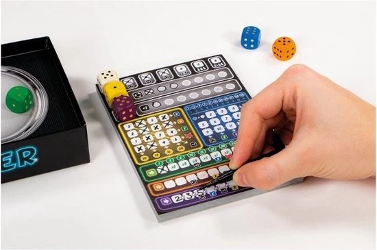 In dit dobbelspel zijn alle spelers voortdurend bezig. Daardoor is het tot het einde razend spannend!