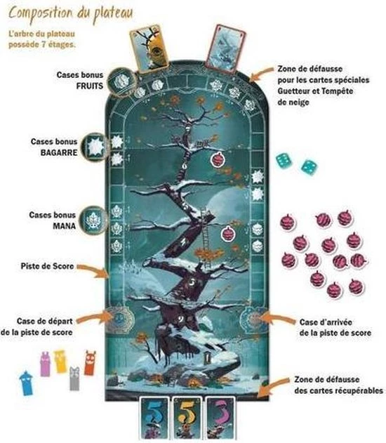 | Verpakkingsinhoud | Snow, is, falling!, Winter, is, finally, here!, A, joust, is, in, the, making:, let, the, show, begin!, You, play, as, children, representing, your, village, and, face, your, opponents, in, a, joyful, competition, around, a, marvelous, tree., Anticipate, other, players’, moves, and, guess, their, intentions., Be, crafty, collect, strange, fruits, and, dodge, the, snowballs!!, Fruits, appear, randomly, on, the, board, at, different, levels, of, the, tree., The, players, will, try, to, seize, them, and, therefore, will, have, to, choose, on, which, branch, they, want, to, climb., Be, careful, though, a, player, will, only, be, able, to, harvest, fruits, if, he, is, alone, on, a, branch, and, if, there, is, not, a, player, in, ambush, just, above, him!, Thus, He, will, try, to, anticipate, the, choices, of, his, opponents, since, otherwise, a, squabble, will, start, which, will, inevitably, end, up, by, the, loss, of, cards, unless, one, of, the, brawlers, dominates, the, fray., Finally, the, cleverest, player, will, score, a, point, for, avoiding, the, fight, by, being, the, lowest, in, the, tree., Between, racing, game, bluff, and, double, guessing. |