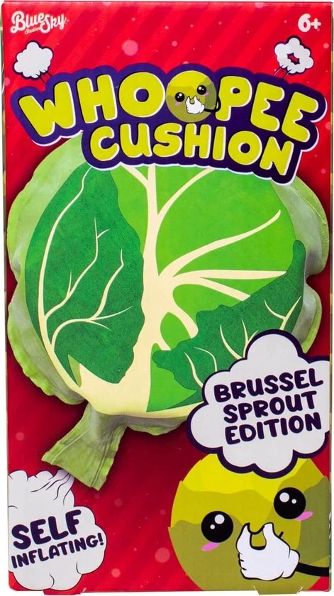 Dit zelfopblazende whoopee-kussen zorgt voor een aantal geweldige spruitjes aangedreven scheten en een luide lach. Gewoon opblazen, verstoppen onder een kussen en wachten tot je nietsvermoedende slachtoffer gaat zitten. Zorgt voor entertainment voor de hele groep.