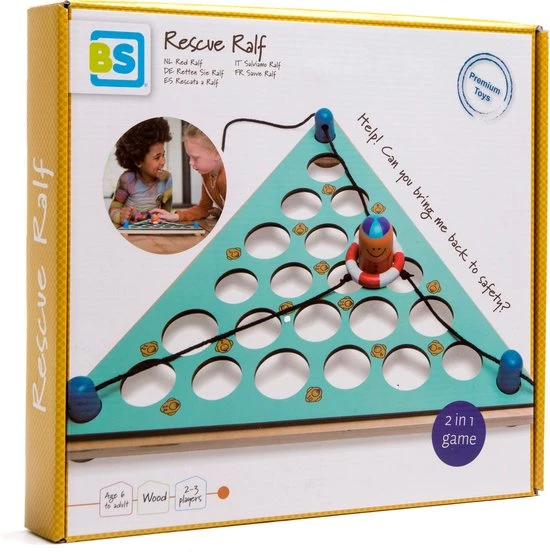 | Verpakkingsinhoud | 1, houten, frame, 1, houten, bordspel, met, twee, spellen, Ralf, boei, met, touw |