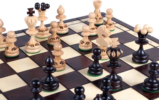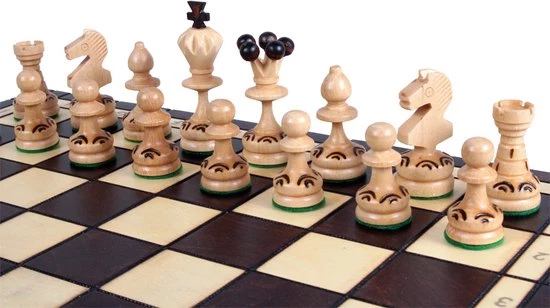 De handgesneden schaakstukken zijn gemaakt van beukenhouten met sublieme details. De consistentie van het houtsnijwerk, de uniformiteit van de grootte en de afstemming van de houttinten is allemaal eersteklas.