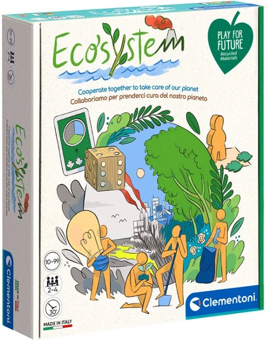 Een co?peratief bordspel met ecologisch thema, voor plezier met vrienden en familie en om respect voor het milieu aan te leren! Doel van het spel is het opruimen van de aarde en beschermen van het natuurschoon: door branden te blussen, smog en luchtvervuiling in steden te verminderen en afval uit de oceanen te verwijderen. Het spel is gebaseerd op co?peratieve regels om het gezin te herinneren dat het belangrijk is dat we allemaal samen goed voor onze planeet zorgen. De spellen uit het Play for Future-assortiment hebben tot doel om iedereen spelenderwijs te laten begrijpen hoe belangrijk duurzaamheid en respect voor het milieu zijn.