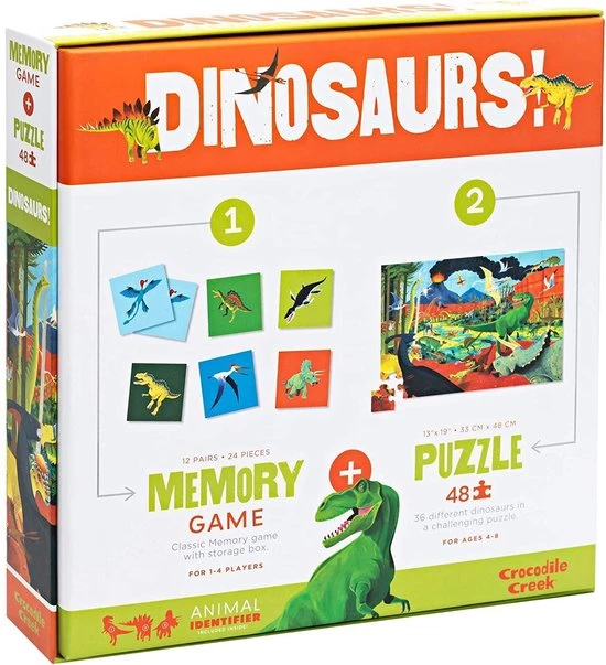 Kenmerken van deze Crocodile Creek memory en puzzel Dinosaurussen: