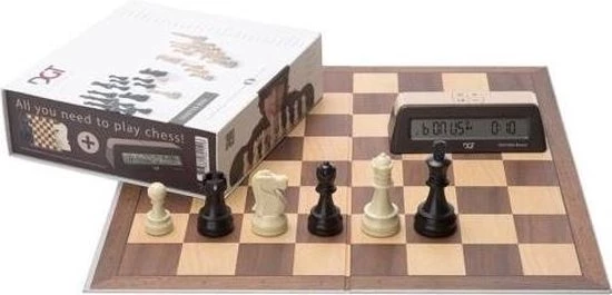 De Chess starter kit Bruin van DGT bestaat uit een dubbel opvouwbaar gelamineerd schaakbord en bijbehorende kunststof schaakstukken. Inclusief digitale schaakklok, de DGT1002 bonus timer is de DGT starterbox bruin de ideale schaak starter set bedoeld voor beginners.