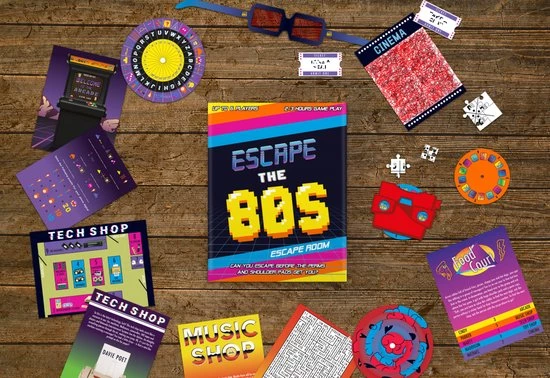 Ga terug in de tijd en bezoek de jaren 80 weer eens! Pak je beenwarmers en schoudervullingen en cre?er je eigen escape room thuis met dit spel van Gift Republic. Beantwoord puzzels en raadsels om terug te gaan naar het heden.