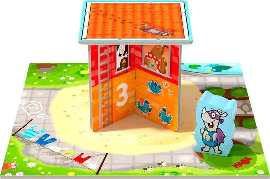 Als een echte superheld speelt Rhino Hero Junior graag hoog spel en daarbij zet hij kleine wereldontdekkers aan om hetzelfde te doen. In drie verschillende spellen oefenen kinderen hun fijne motoriek bij het ordenen en het stapelen, leren ze tellen en verwerven ze inzicht in aantallen. In het derde spel trainen ze ook hun geheugen. Verdieping per verdieping stijgt de plezier- en leercurve, tot de heldhaftige neushoorn helemaal boven aankomt en de kinderen samen winnen.
