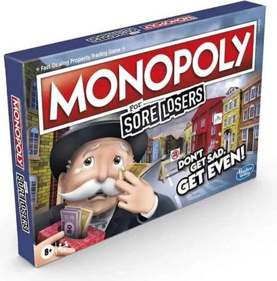 Say goodbye to the frustration of losing while playing Monopoly, and say hello to the Monopoly For Sore Losers board game. This hilarious twist on the Monopoly game turns losing on its head and celebrates it instead. Players earn cash by doing the typically frustrating things in the game such as going to Jail, paying rent on a property, or going bankrupt. And those who really start sinking can make a comeback using the large Mr. Monopoly token that gives players advantages over everyone else. So get playing, get the revenge you’ve been craving, and feel good about losing! Family Game Night might never be the same again.