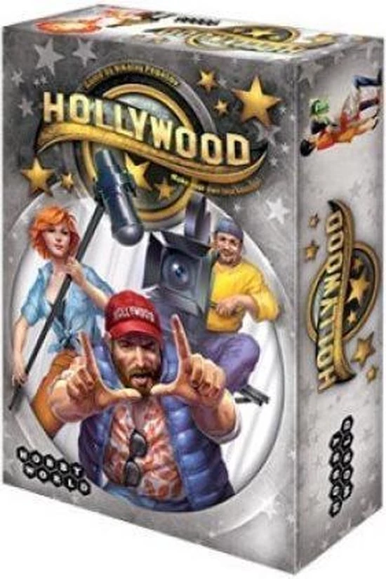In the movie-making game Hollywood, each player is a studio boss who tries to produce the most successful blockbuster. Players construct movies from game cards that they draft or purchase. Players compete to get the most popular stars to perform in their movies because this brings them more money and more Hollywood Awards (which are pictured on some cards).