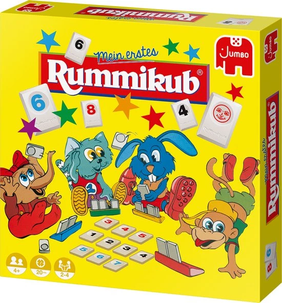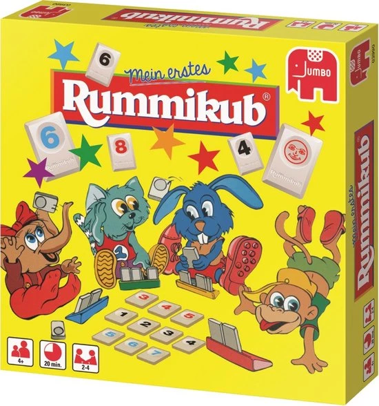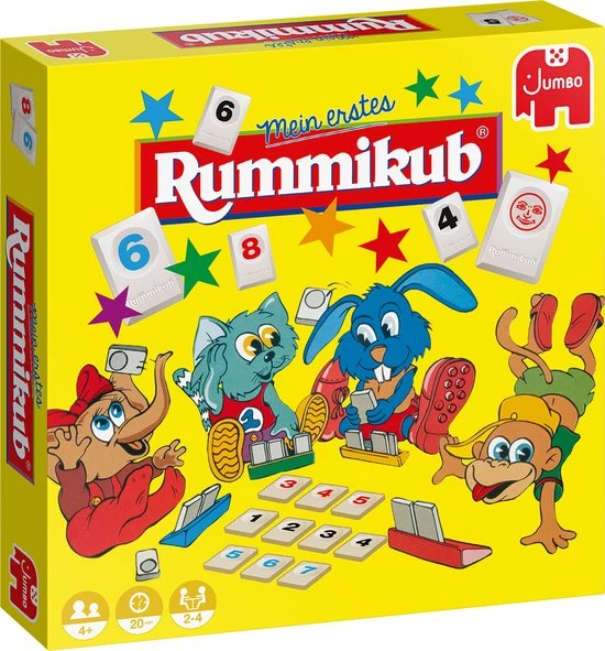 Rummikub Mein erstes. Genre: Bordspel met tegels, Speeltijd (max): 20 min, Doelpubliek: Kinderen. Breedte verpakking: 265 mm, Diepte verpakking: 50 mm, Hoogte verpakking: 265 mm. Hoeveelheid per container (20ft): 7200 stuk(s), Hoeveelheid per container (40ft): 14400 stuk(s), Hoogte pallet: 2 m