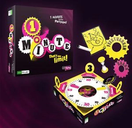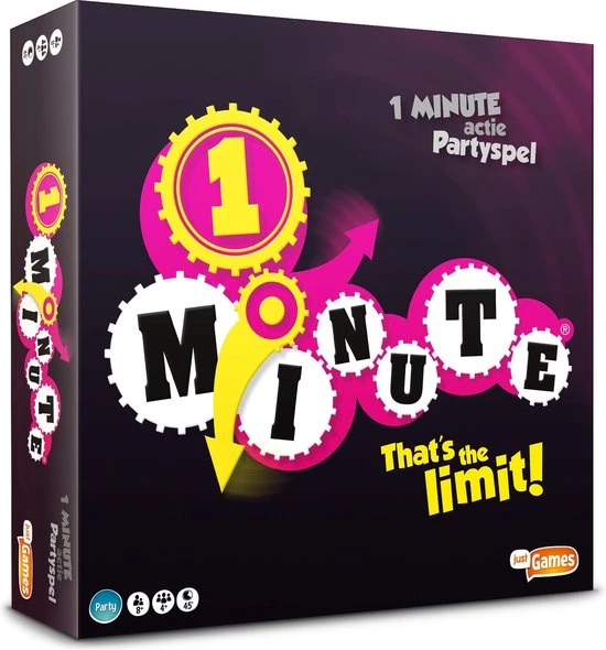 1 Minute is een razendsnel partyspel. Je speelt in twee teams die van alles moeten doen: tekenen, uitbeelden en omschrijven. O ja, klein probleempje: voor je het weet tikken de seconden weg, je hebt namelijk maar 1 minuut om de opdracht uit te voeren; sorry!