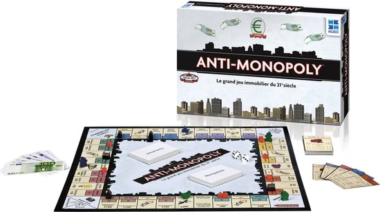 Verzet je je tegen de monopolisten van onze kapitalistische wereld, of voeg je je bij hen? Aan jou de keuze! In Anti-Monopoly kies je of je in het vel kruipt van een monopolist, of je deel uitmaakt van de vrije concurrentie. Hoe dan ook word je gedreven door prijzenoorlogen en marktmechanismen en ga je concurreren met je tegenspelers. De spelregels zijn zo opgesteld dat beide partijen eerlijke kansen krijgen.