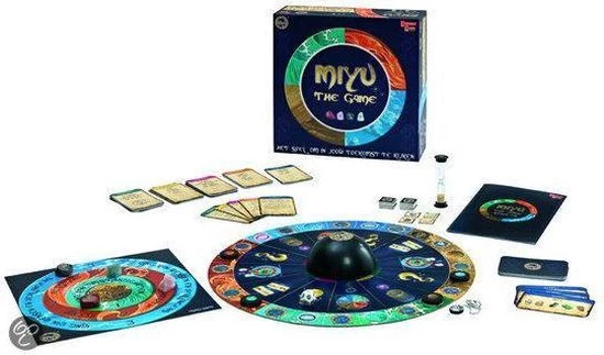 | Verpakkingsinhoud | 4, miyu, stenen, 1, pendel, met, moodring, 1, magisch, gids, met, spelregels, 1, spelbord, 1, orakelkaart, 1, pendelkaart, 4, speelfiguren, 40, Miyu, fiches, 1, horoscoop, dobbelsteen, 50, opdrachtkaarten, 20, wensrijen, 1, zandloper, 1, geheime, code |