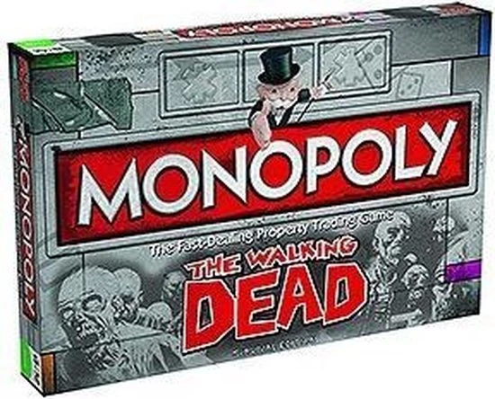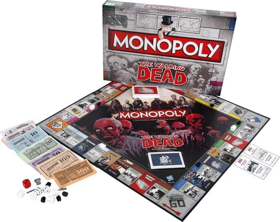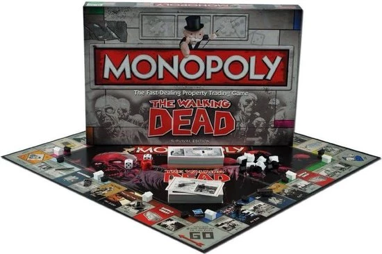 Om te kunnen overleven in deze The Walking Dead Comic Survival Edition Monopoly proberen spelers locaties en levensmiddelen te verkrijgen. Ontloop de zombies! Inclusief 6 unieke Walking Dead speelstukken.