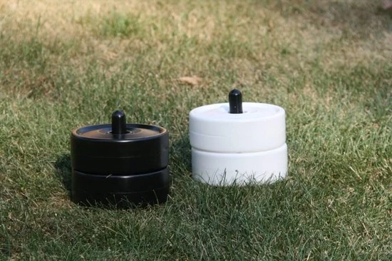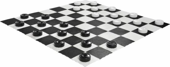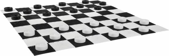 Een fantastisch spel voor in de tuin. Net als tuin-schaken, geeft de maatvoering van dit spel dammen een geweldig nieuwe dimensie. Ideaal voor buiten-activiteiten als familie feesten, bbq-feesten en andere gezellige dagen om bij elkaar te zijn en te genieten van een overzichtelijk spel.De set is gemaakt van versterkt PVC: vocht/waterbestendig en ook UV-bestendig. U ontvangt bij deze set:– 12 witte en 12 zwarte stukken– Elk 4 cm in hoogte, en 10 cm in diameter– 6 plastic stapelstukken om de dammen te kunnen maken.Let op: op de foto is er een speelveld, u kunt dit apart bijbestellen in het menu.