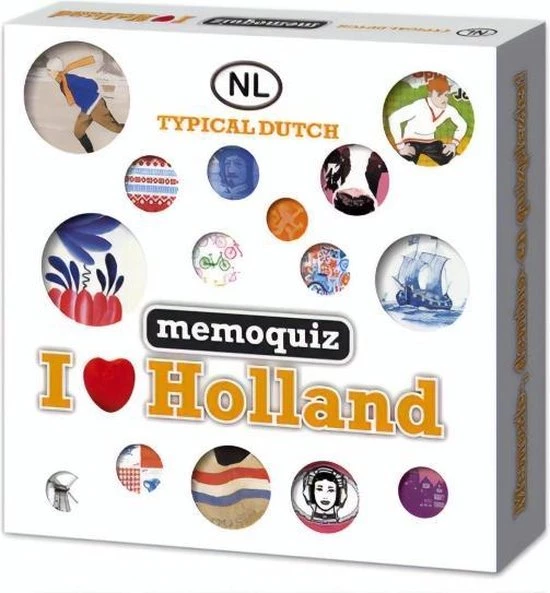 Memoquiz I love Holland is één van de gezelschapsspellen uit de memoquiz-serie van Nova Carta en past perfect in de Bickery-lijn ‘I love Holland’. Een memoquiz-spel over alles wat typisch Hollands is.