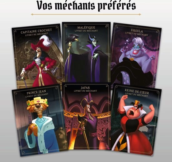 Entrez dans la peau de 6 c?l?bres M?chants de Disney : Mal?fique, Jafar, Capitaine Crochet, Ursula, Prince Jean et la Dame de c?ur ; et suivez votre propre objectif diabolique pour gagner le titre de pire m?chant de tous les temps ! Tout comme dans les films, aucun M?chant ne se ressemble : chaque univers est fid?lement transpos? gr?ce ? des cartes propres ? chaque M?chant et un objectif personnel. L?immersion est totale, que vous essayez de maudire le royaume en tant que Mal?fique ou de devenir le plus riche avec le Prince Jean, chaque partie sera diff?rente R?veillez le Mal qui est en vous? Suivez vos propres plans machiav?liques et devenez le plus grand m?chant de Disney ! D?s 10 ans.