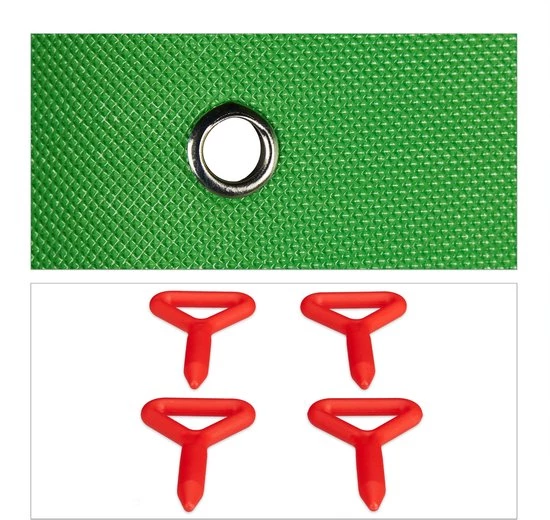 dobbelsteen en 4 haringen om het bord vast te zetten.
