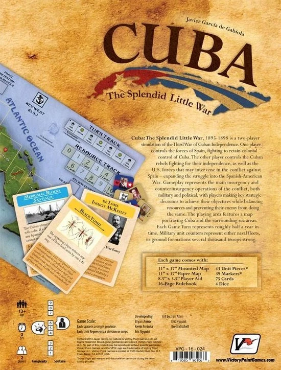Cuba The Splendid Little War van Victory Point Games is een tweepersoonsspel dat de derde oorlog van de Cubaanse onafhankelijkheid simuleert. De oorlog vond plaats in 1895 en duurde tot 1898.