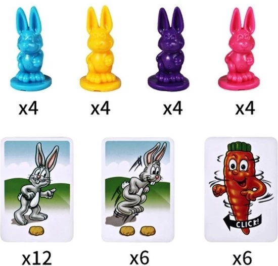 - 16 x konijnen beeldjes (4 verschillende kleuren).