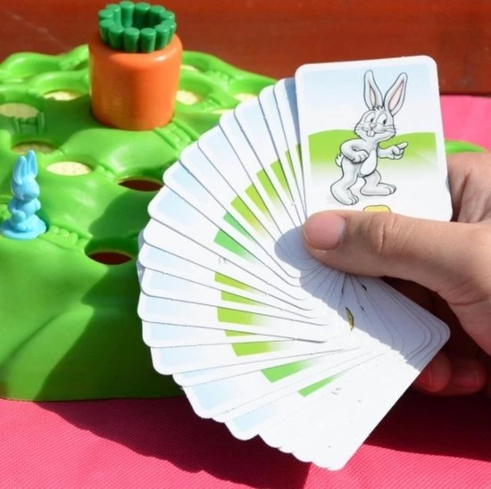 De spelers trekken kaarten en kijken hoeveel trappen er de heuvel op kunnen. Maar wees voorzichtig, konijnen kunnen tijdens de reis in kuilen vallen.