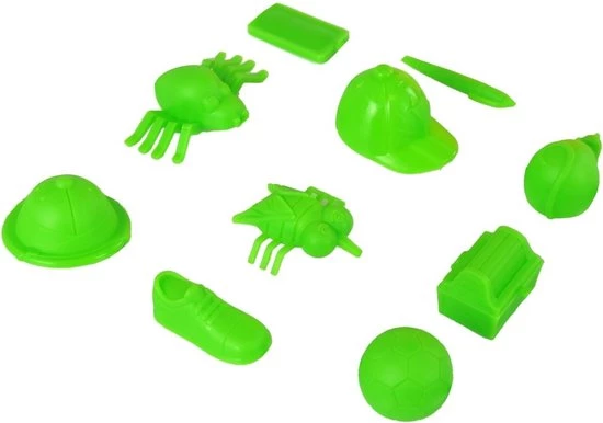 - 10 voorwerpen (veer, pet, muis, schoenen, bal, spin, schatkist, telefoon, mug, hoed)