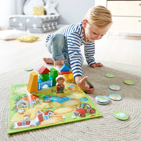 In 10 verschillende spellen leren kinderen om kleuren en vormen te ordenen. Met memospellen oefen je het onthouden van dingen, daarbij bevorderen het gooien met de dobbelsteen en het stapelen de oog- handco?rdinatie. Kinderen kunnen met de spellencollectie ook vrij spelen en helemaal wegduiken in de kleurrijke, vrolijke wereld van de boerderij!